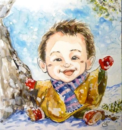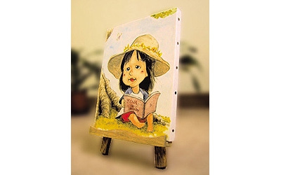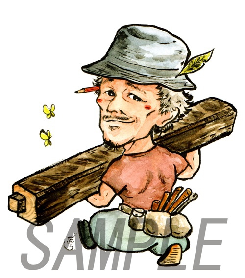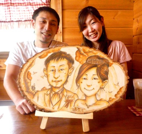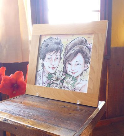 切り株同様、記念品やウエルカムボードに似顔絵を絵描いて差し上げます。キャンパスは木枠に画用紙をはり止めたもので大きさは切り株とだいたい同じA3~B4サイズ。
