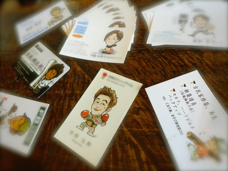 なぜならその方の雰囲気や思いをお話をしながら肌で感じて絵に反映させるためです。(どうしてもお会い出来ない場合のみご相談下さい。)スケッチ取材はこころ絵館にお越し頂いて描くか、会社様のスタッフ様人数複数の場合等は出張にて描かせて頂きます。名刺を出す人も渡される人も気持ちよくなるような、または目指す姿を表すような似顔絵キャラクターにしたいと心がけております。