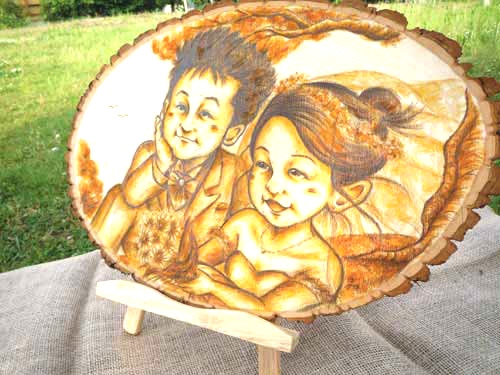 あたたかみを閉じ込めた切り株肖像画が喜ばれます。